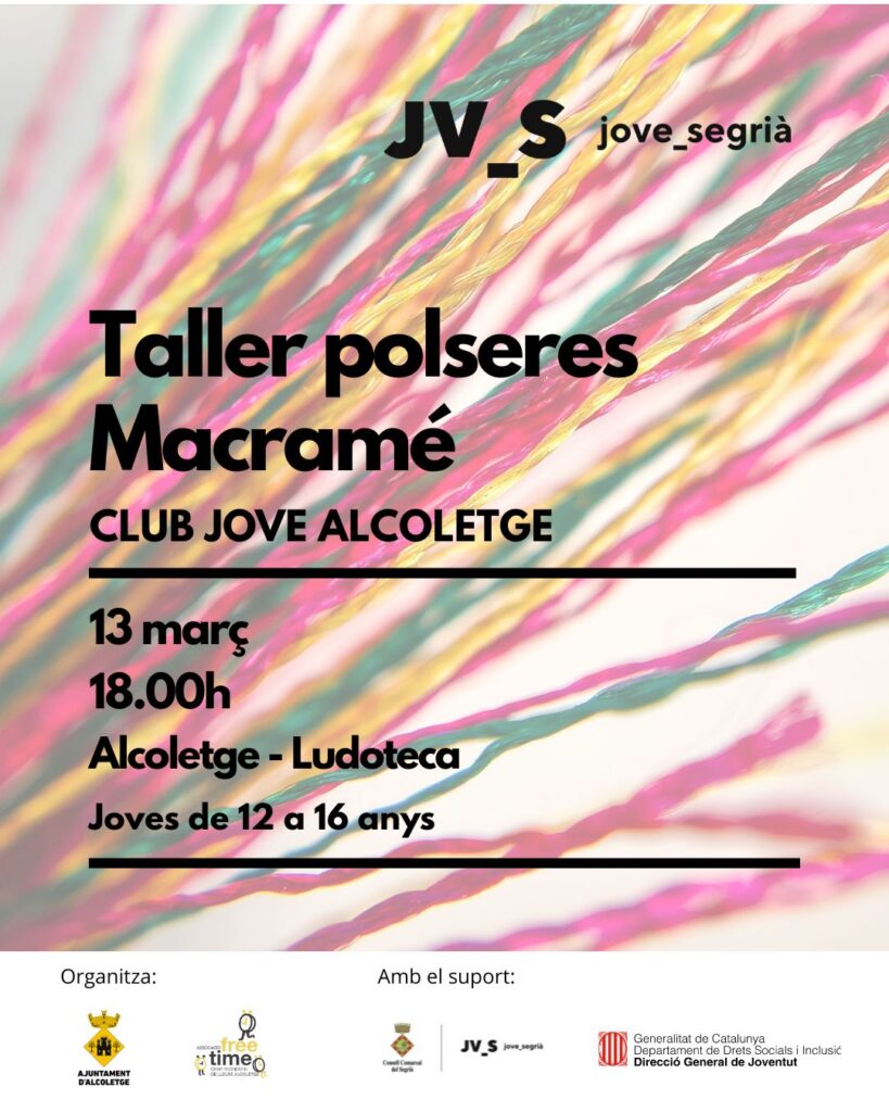 L’Ajuntament d'Alcoletge i l’entitat Free Time, a través del Pla Local de Joventut i dins de la programació del Club Jove 2026, us porten una activitat creativa que us encantarà! 🧵💫