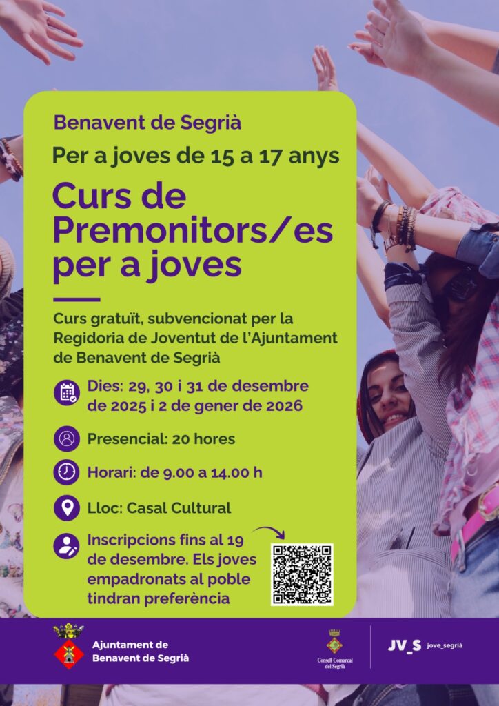 ℹ️ Es prioritzaran les inscripcions a les persones joves empadronades a Benavent de Segrià.