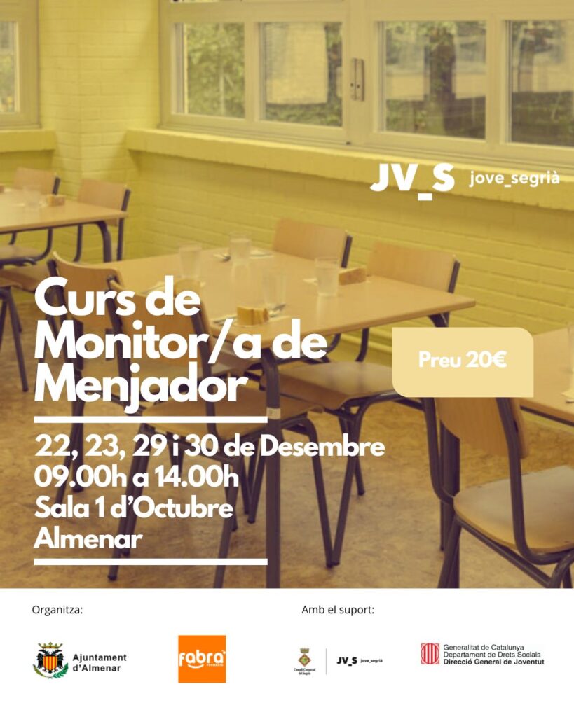 L’Ajuntament d’Almenar mitjançant el Pla Local de Joventut, organitza un Curs de Monitor/a de Menjador durant les vacances de Nadal de 2025.