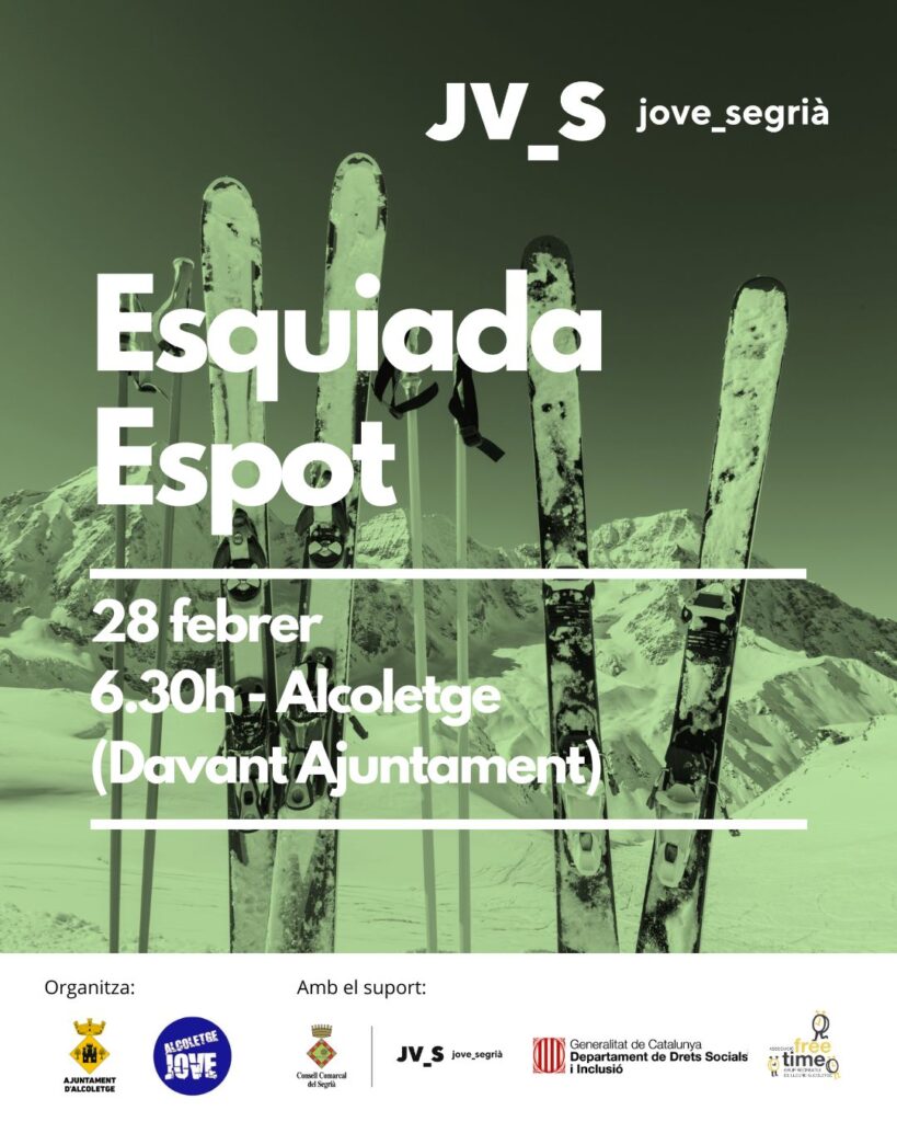 L'Associació Alcoletge Jove, amb l’Ajuntament d’Alcoletge i l’entitat Free Time, t’ofereix una increïble sortida a les pistes d'esquí d'ESPOT!