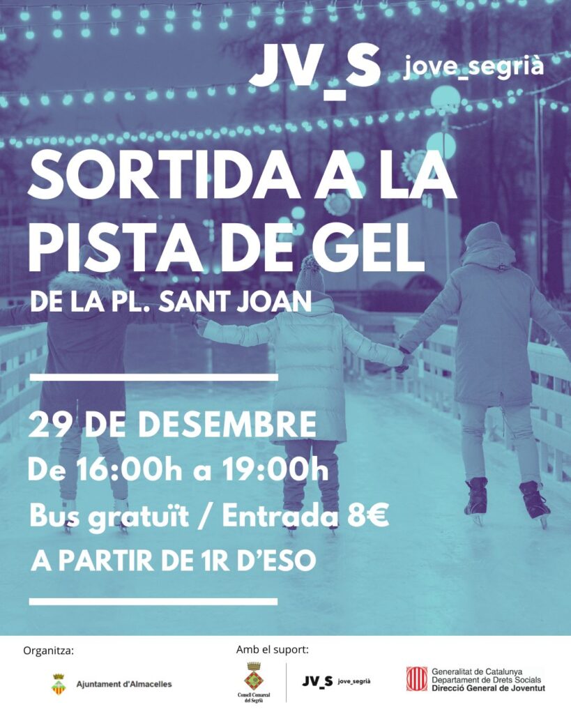 L'Ajuntament d'Almacelles organitza per mitjà del Pla Local de Joventut una sortida a la PISTA DE GEL de la Plaça Sant Joan de Lleida el dilluns 29 de desembre. ✨⛸️