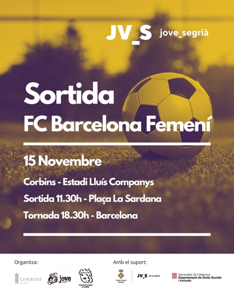 L’Associació de joves de Corbins "Lo Jovent", juntament amb l’Associació de Dones de Corbins i l’Ajuntament de Corbins, organitza una sortida a veure un partit del FC Barcelona Femení!
